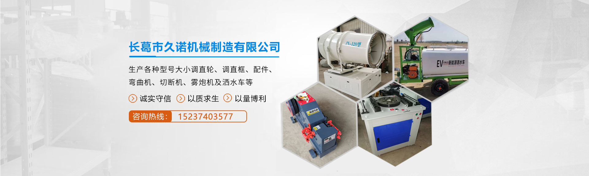 長葛市久諾機械制造有限公司(長葛市雙箭機械廠旗下公司)位于長葛市老城鎮(zhèn)崗張工業(yè)區(qū),公司產(chǎn)品擁有自己的品牌“金達(dá)”,是一家集機械產(chǎn)品研發(fā)、生產(chǎn)、營銷為一體的科技實體企業(yè)。主要生產(chǎn)6輪、7輪、8輪、重6輪、重7輪、重8輪調(diào)直框、調(diào)制輪、配件、彎曲機、切斷機、霧炮機及灑水車等。